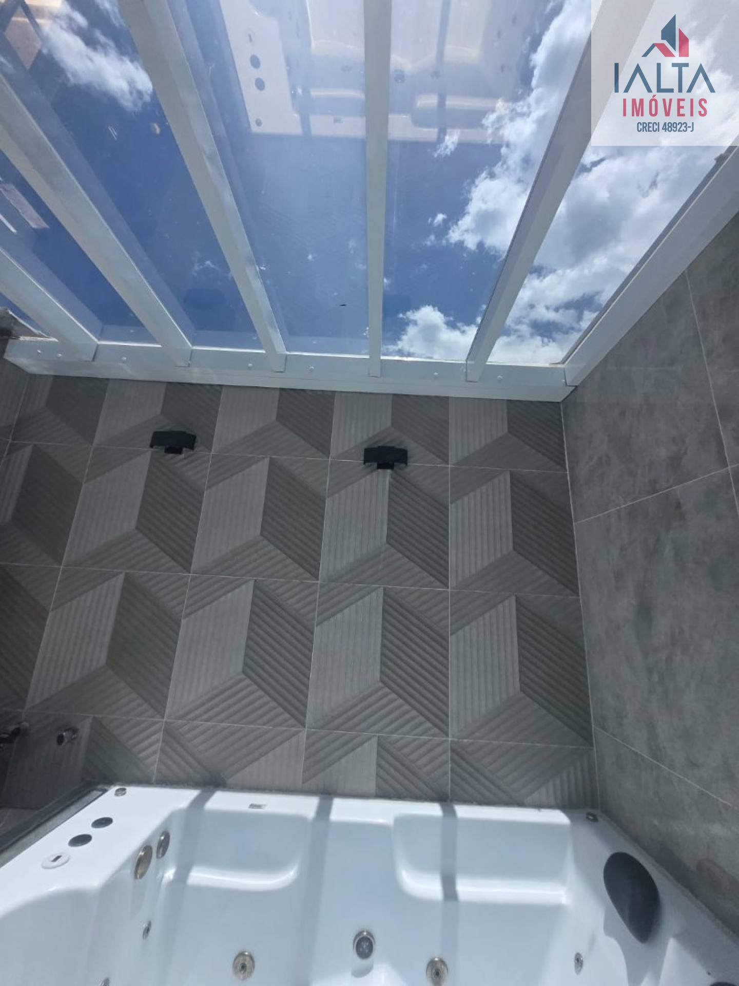SPA coberto com vidro, equipado com banheira de hidromassagem para até 6 pessoas, cromoterapia e air blower