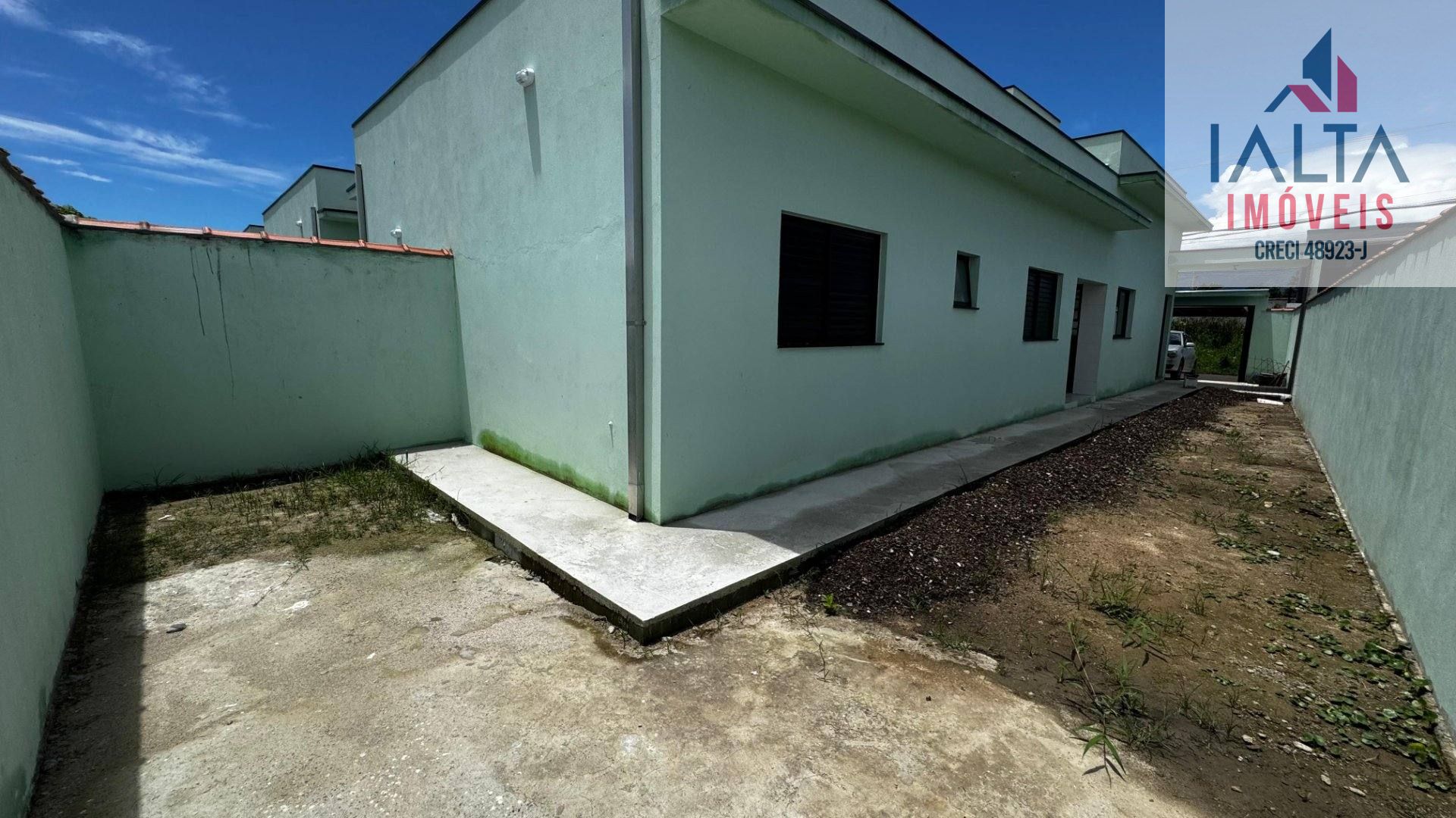 Quintal com espaço nas laterais e fundos, ideal para futura área gourmet ou ampliação