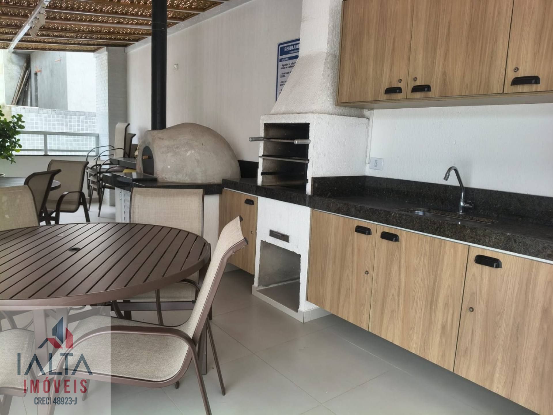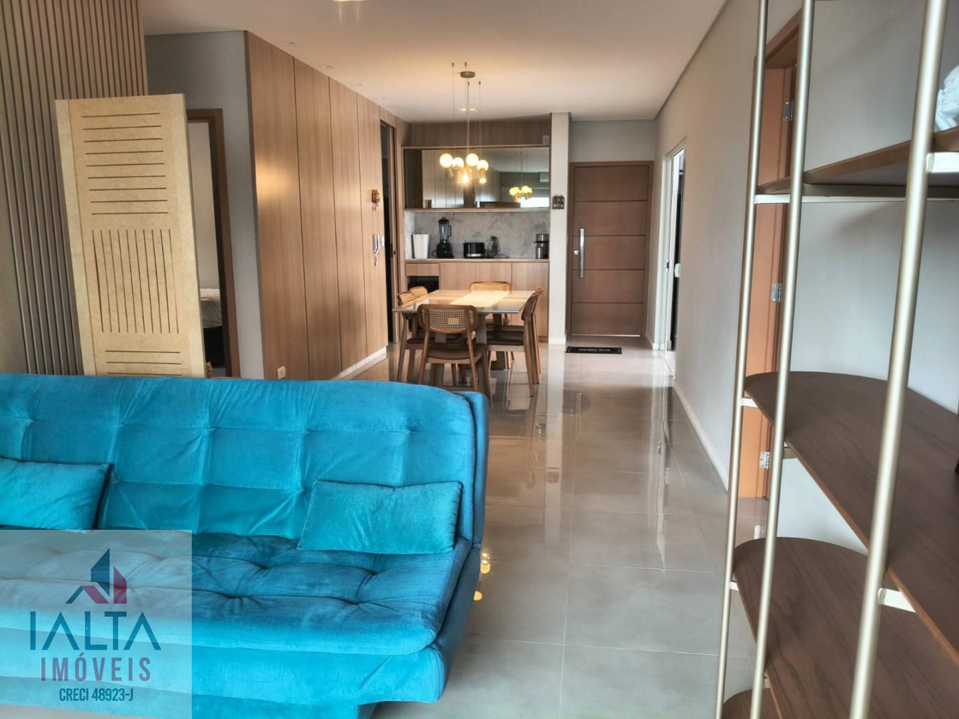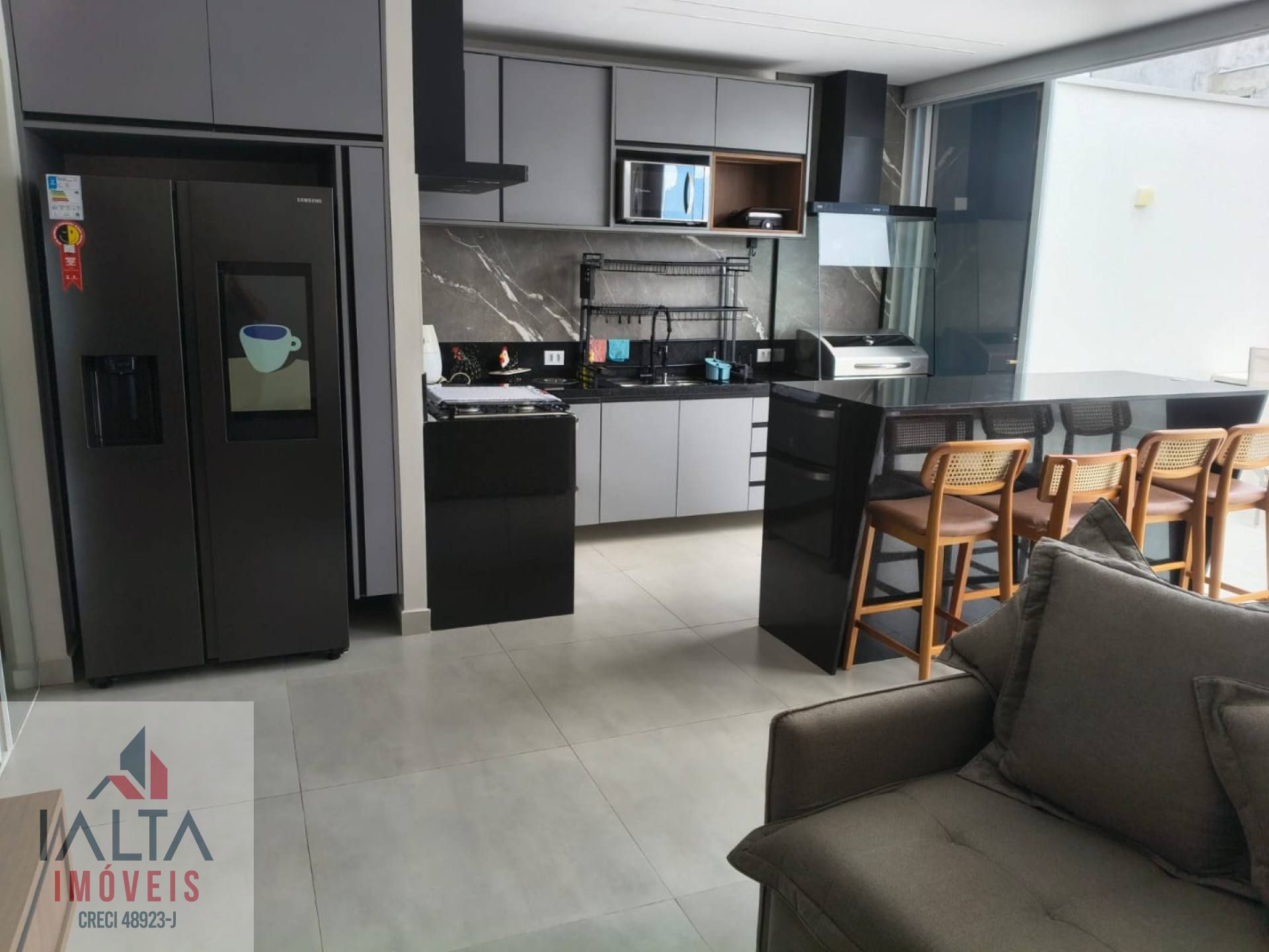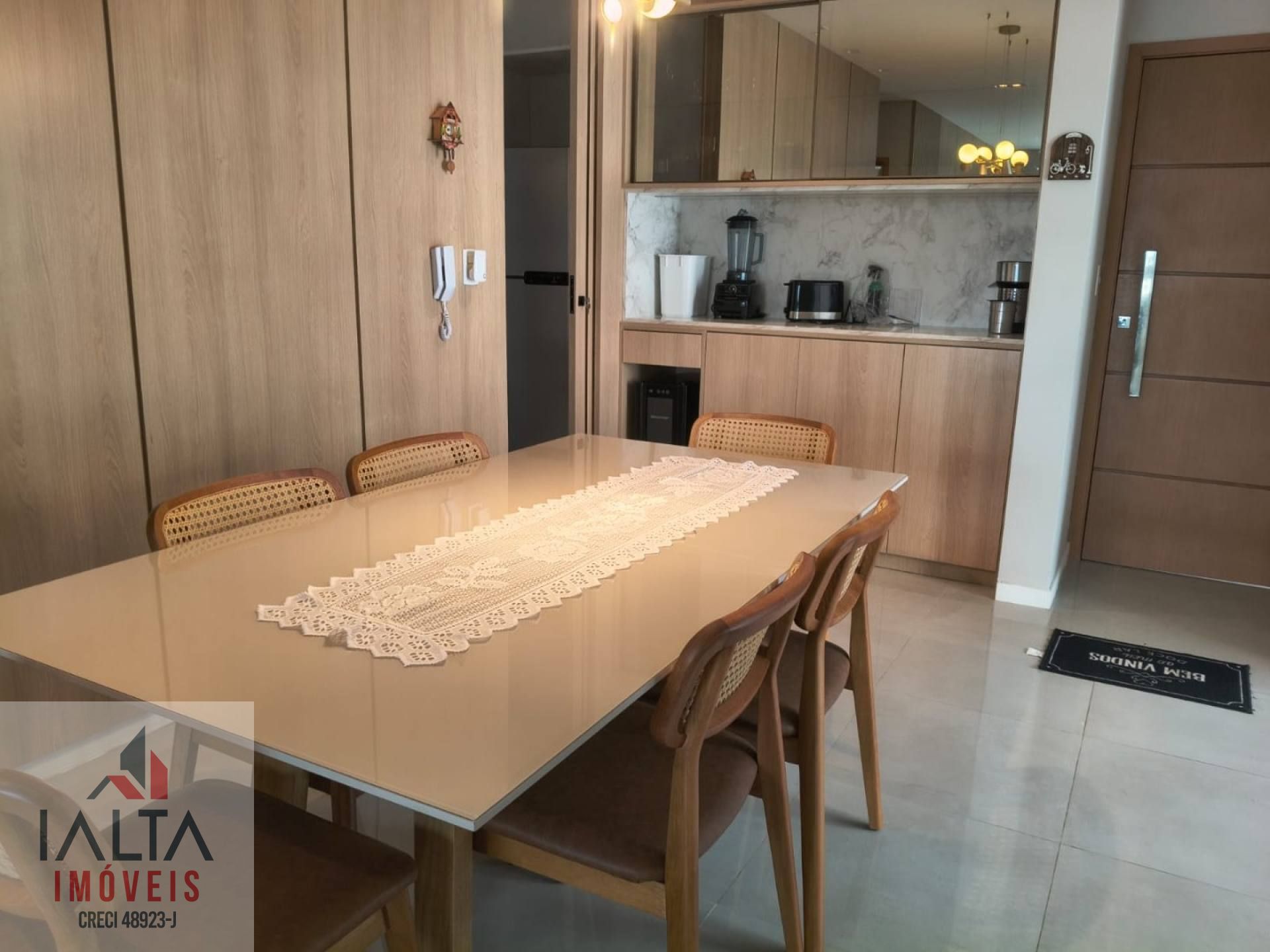 O imóvel é mobiliado e possui armários embutidos, além de uma cozinha equipada e área de serviço.