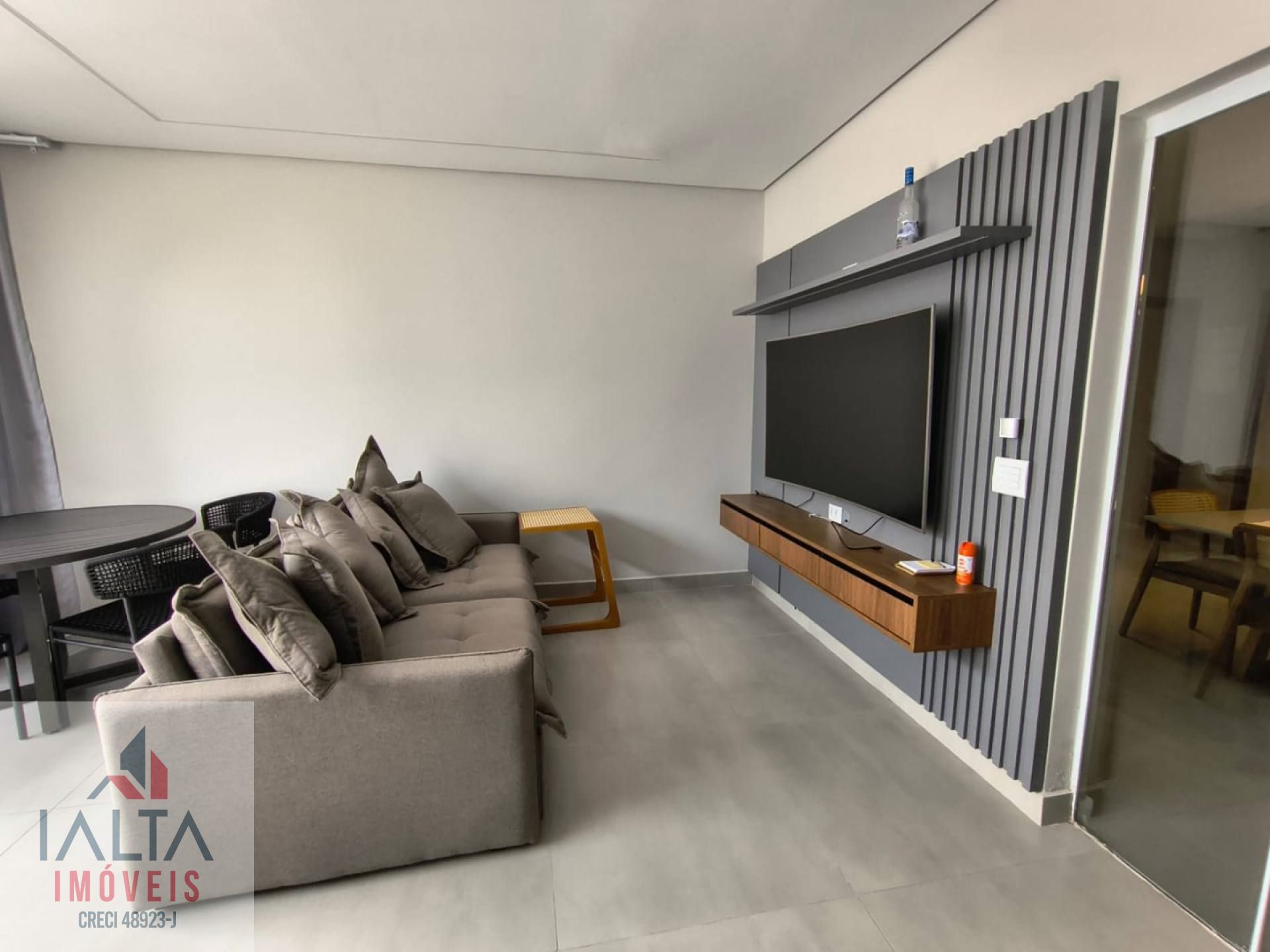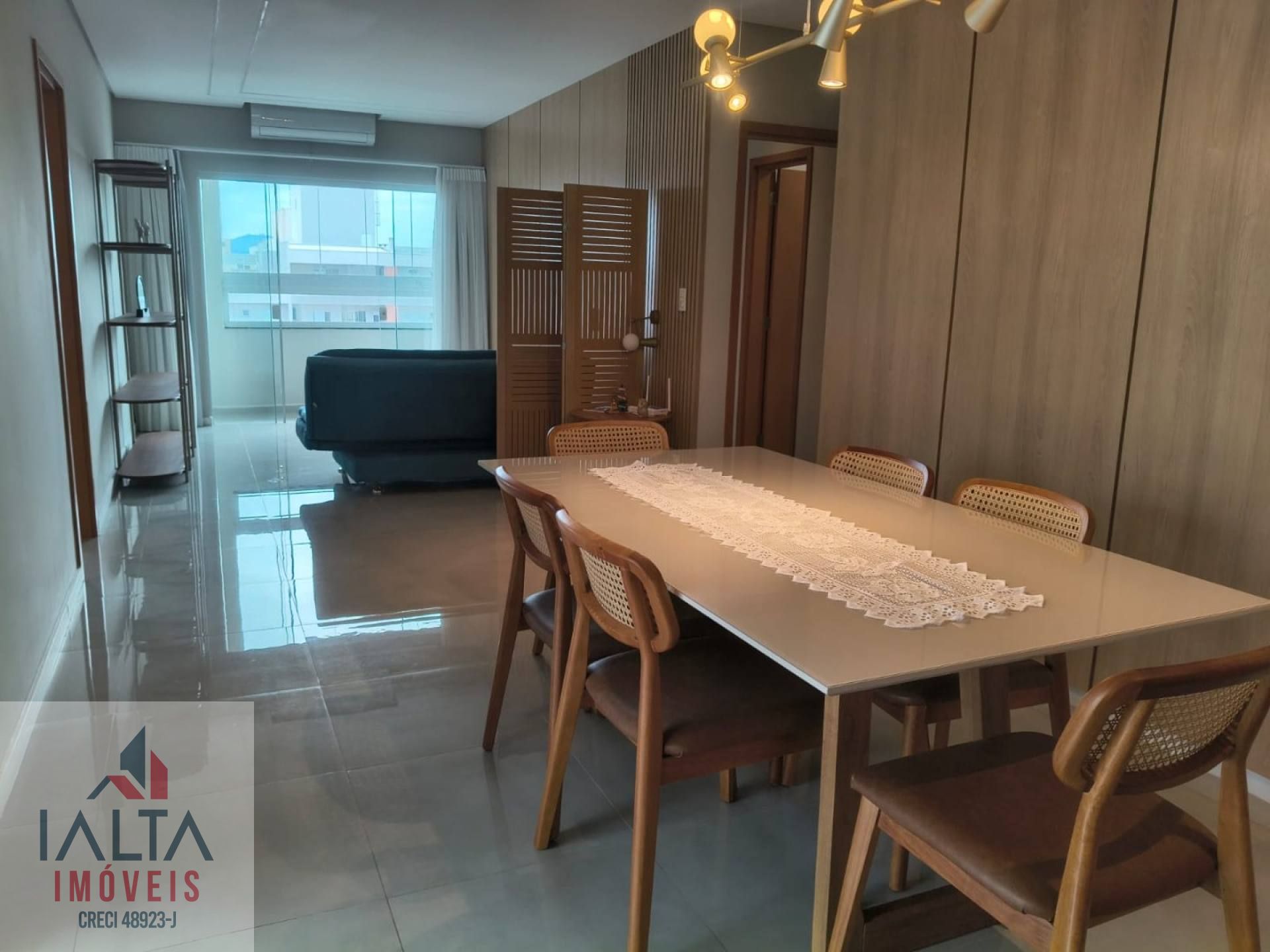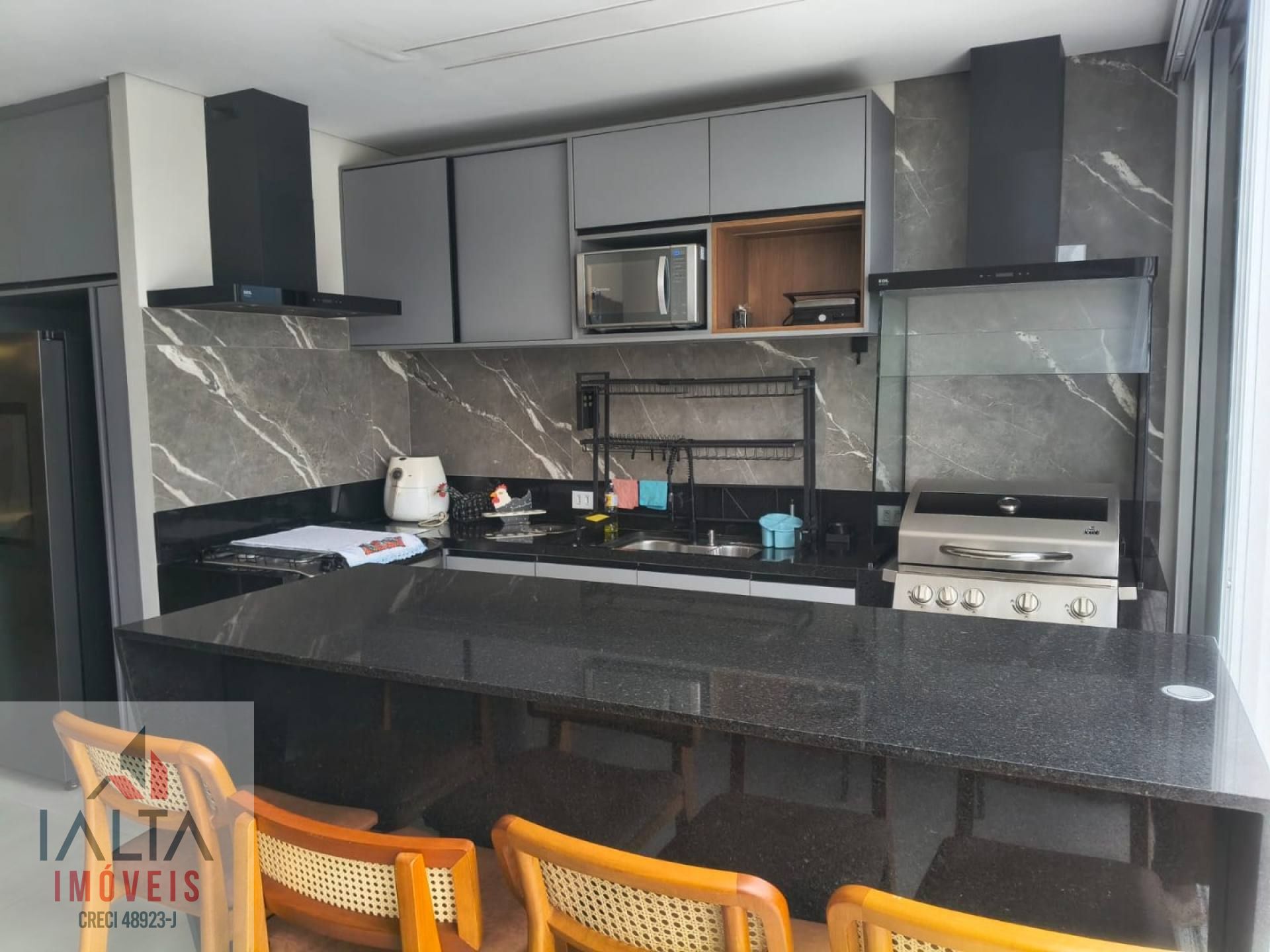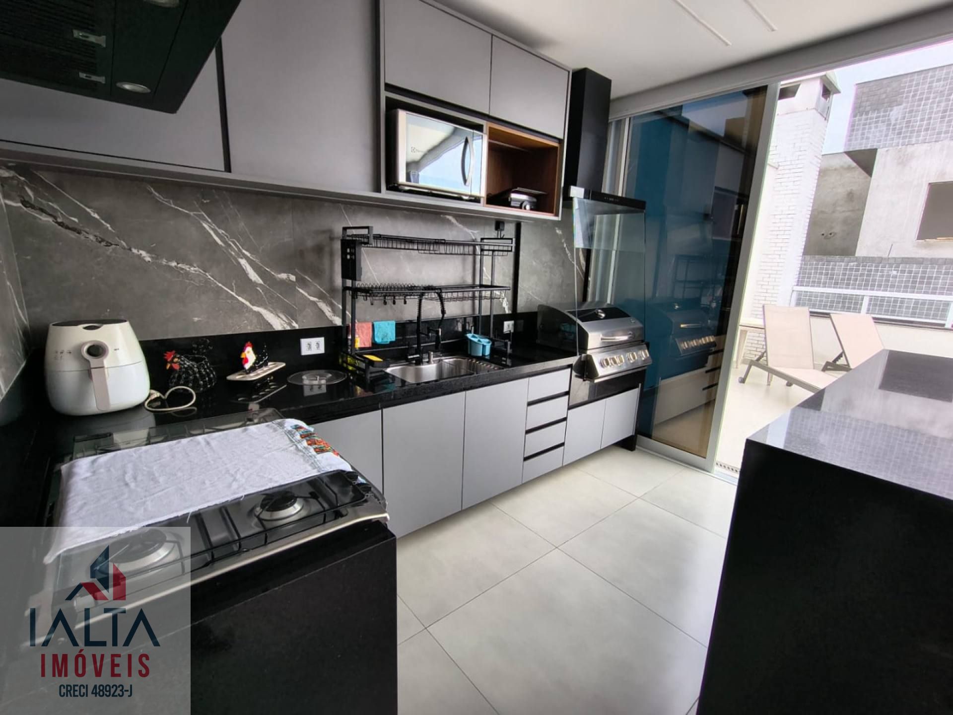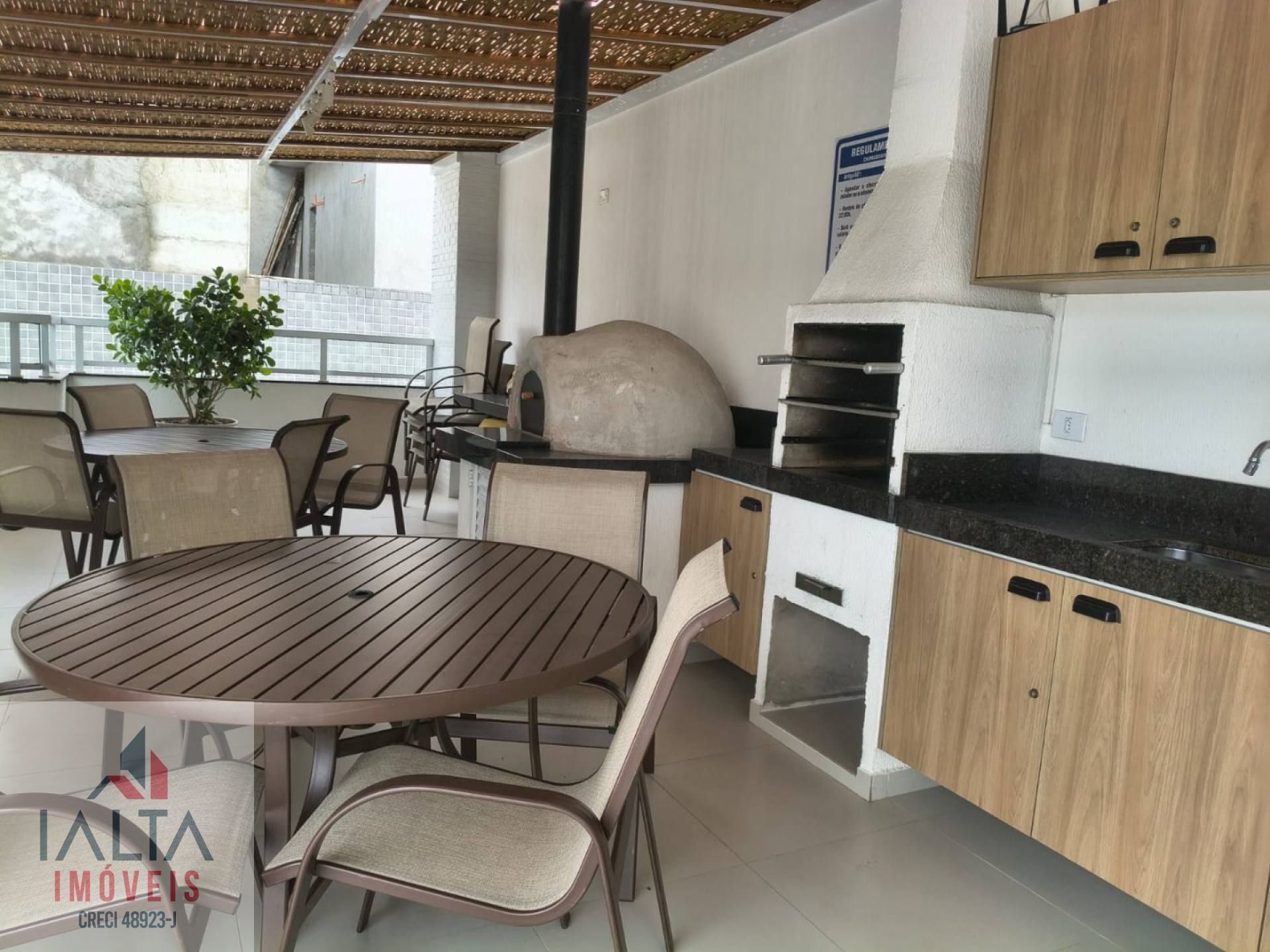 O imóvel é mobiliado e possui armários embutidos, além de uma cozinha equipada e área de serviço.