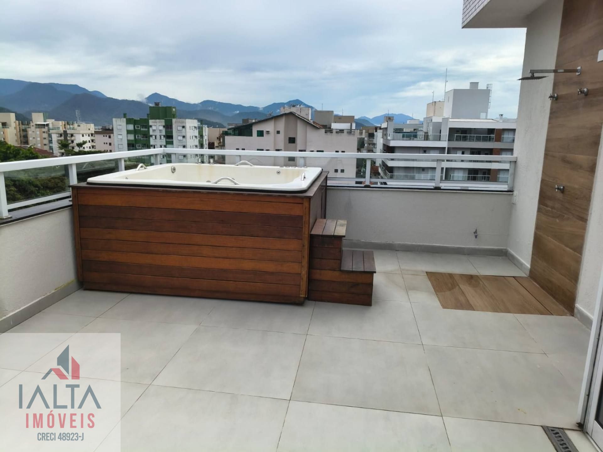 A cobertura ainda conta com uma jacuzzi, ideal para relaxar e se refrescar nos dias ensolarados, além de 2 vagas de garagem, sendo uma coberta.