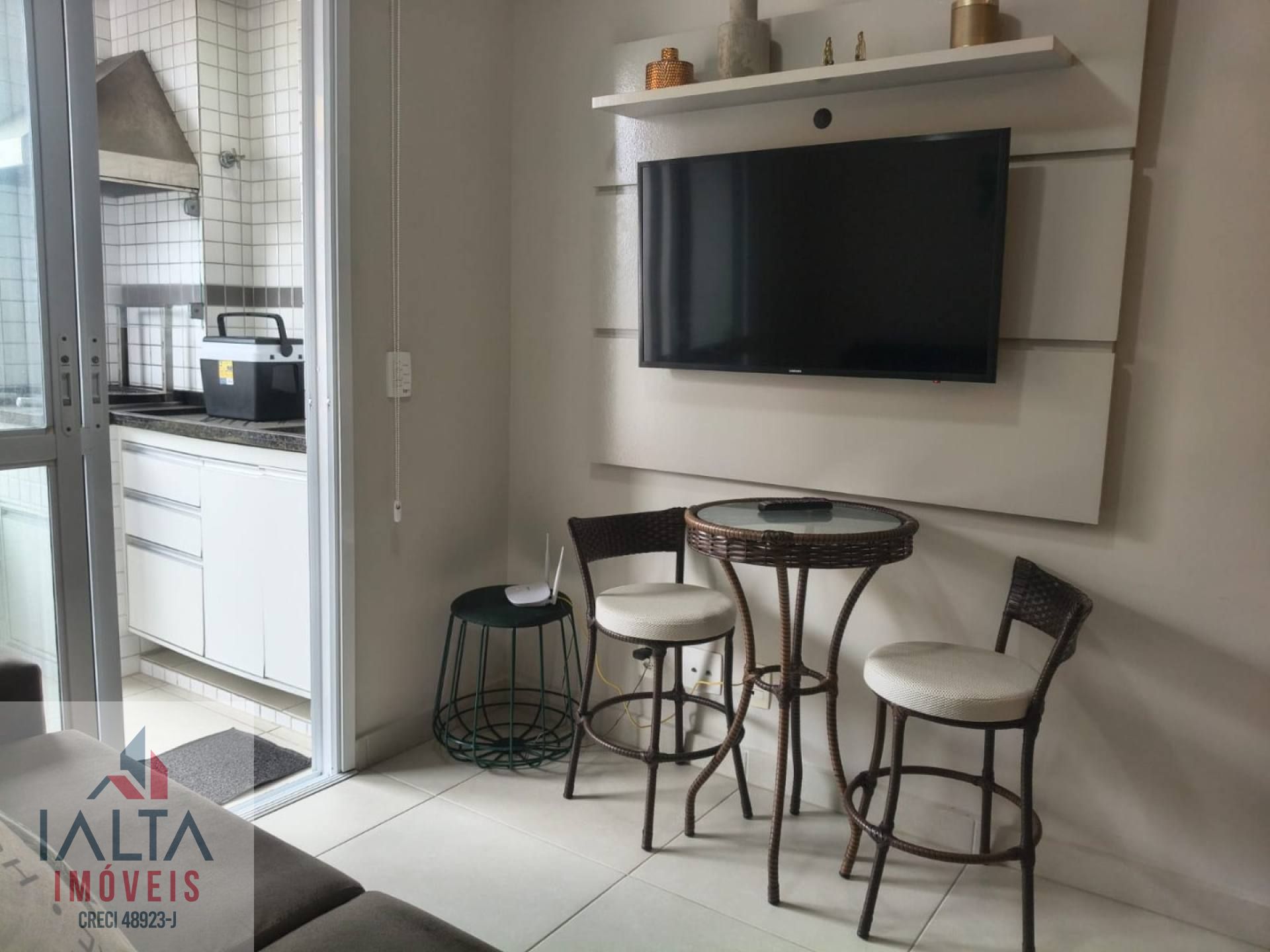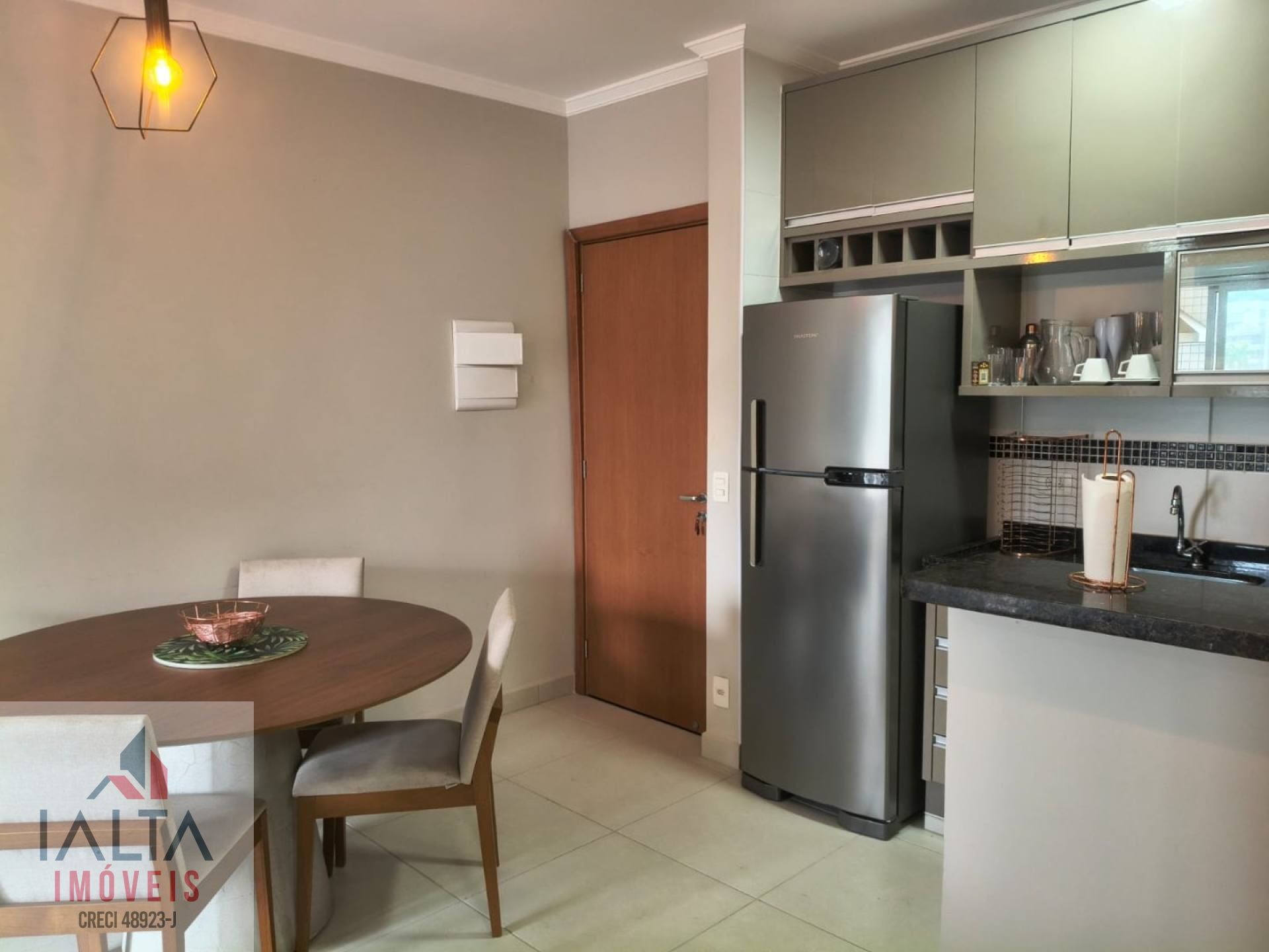 O imóvel é mobiliado e possui armários de cozinha e embutidos, otimizando o armazenamento e a organização.