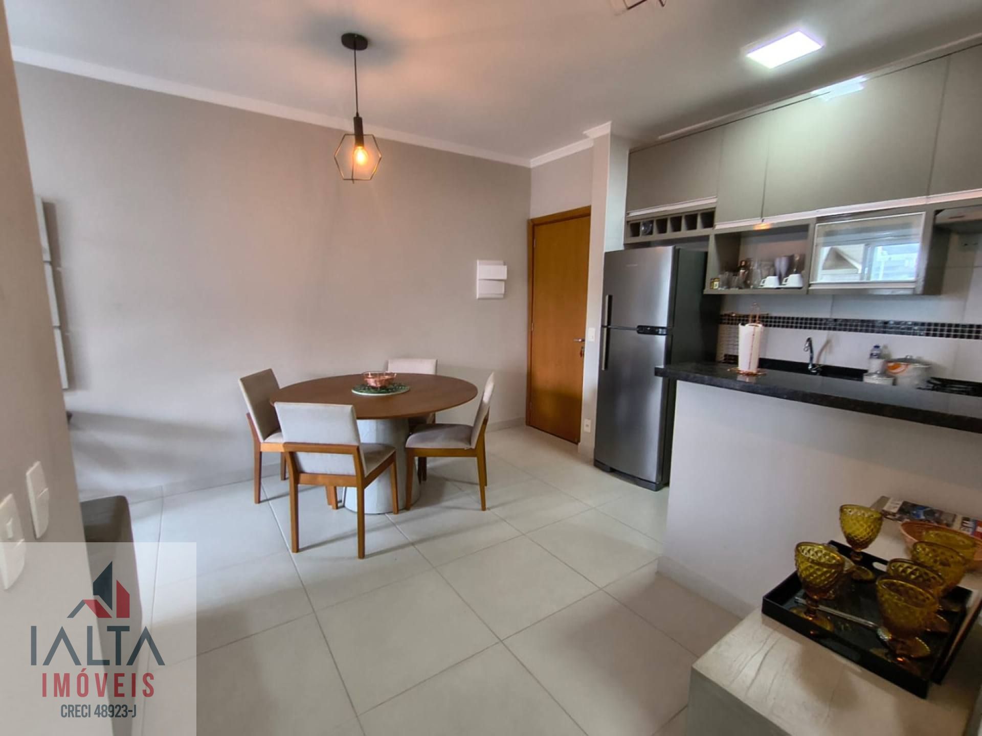 A área privativa do apartamento conta com uma sala de almoço que se integra harmoniosamente ao ambiente, proporcionando um espaço ideal para refeições em família.